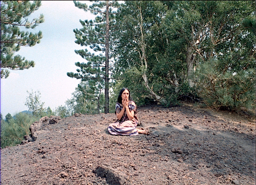 La fidélité, à cet égard, passe ici par le retour par des plans déjà tournés, des plans qui viennent de cinq Straub-films d’époque et de tonalités très différentes, Fortini/Cani, 1976), Trop tôt, trop tard (1982), La Mort d’Empédocle (1987), Noir péché (1989) et Ouvriers, paysans (2011). Il ne s’agit évidemment pas d’auto-citation narcissique, il s’agit de remettre au travail les travaux d’hier, de faire jaillir de nouvelles étincelles en frottant à nouveau des pierres déjà mises en formes et employées. Cette entreprise nouvelle saturée de souvenirs, voire de fantômes (fantômes d’autres époques, d’autres perceptions et compréhensions du monde) mène à une image de Danièle Huillet – est-il besoin d’insister sur cette fidélité-là ? – semant les points de suspension de cette quête obstinée, qui repasse par sa propre archéologie pour cheminer encore.