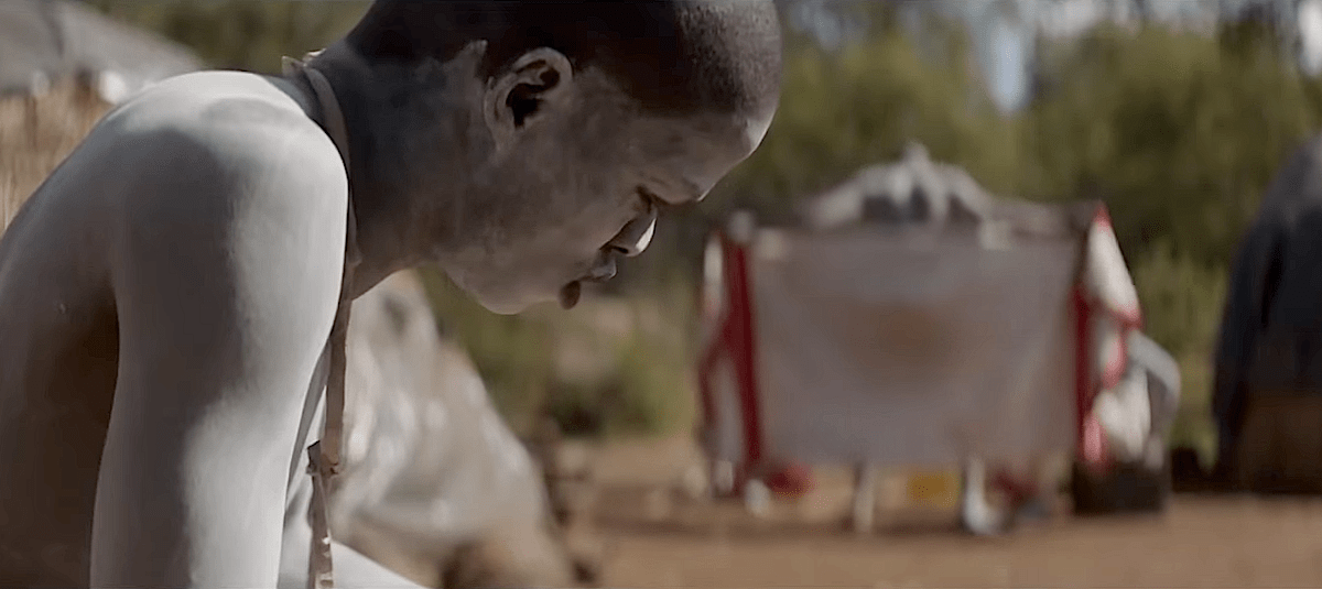 Parmi le groupe de jeunes gens du film, si les autres sont des paysans et des bergers, l’un, Kwanda, est arrivé de la ville en voiture, amené par son père aux allures d’homme d’affaires cossu, mais pas moins imbu de tradition et de culte de la virilité.