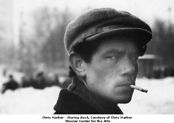 Bien sûr chacune de ces photos vaut pour elle même, a été faite pour elle même. Elles sont l’œuvre d’un très bon photographe qui s’appelle Chris Marker. Mais l’ensemble de ces photos, photos à présent réunies dans un livre, Staring Back[2], raconte quelque chose d’autre, quelque chose de ce qu’on connaît, de ce qu’on a appris à connaître au fil des décennies sous le pseudonyme de Chris Marker. L’ensemble photographique dénommé Staring back manifeste ce dont Chris Marker est le nom : une manière singulière d’incarner le générique de Vertigo, à la fois mouvement en avant, vers les lieux, les gens, les idées, et mouvement en arrière, de mise à distance qui interroge et transforme les usages de perception et de pensée. Il raconte ça, mais il le change.