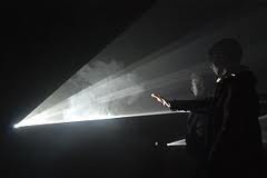 Mais un film, bien sûr, n’est pas la somme matérielle d’ingrédients, fussent-ils chacun réfractés par une sensibilité exceptionnelle. Quelque part dans le processus artistique, tout cela (livre, fusil, photos, lumière, corps des acteurs, événements du récit, mélodie…) doit fusionner pour donner quelque chose d’autre, un film. Ici, puisque nous ne sommes pas au cinéma, ce n’est pas un film qu’on découvre au fond (à tous les sens du mot) de l’exposition « Primitive ». C’est, à nouveau, la spatialisation, la matérialisation de cette idée qui d’ordinaire reste abstraite, l’idée de ce qui fait œuvre, comme excédant absolument ses composants. Au terme de ce parcours en forme d’immersion progressive, dans une vaste pièce noire qui n’est pas une salle de cinéma, deux grands écrans formant un angle d’environ 120° montrent deux successions d’images, visualisation intuitive du travail du montage, et moment de splendeur douce, chavirante, inexplicable. Assis ou allongés, nous visiteurs-spectateurs devenons les passagers de ce voyage mystérieux qu’est l’expérience artistique lorsqu’elle résonne puissamment avec le monde, par des voies jamais parcourues encore.