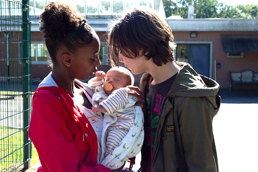 Par brefs épisodes centrés successivement sur quatre jeunes femmes, Jessica, Perla, Julie et Ariane (avec une apparition brève mais mémorable d’une cinquième, Naïma), Jeunes mères compose le récit collectif de situations prises en charge par ce qui s’appelle, en Belgique, une maison maternelle. La mise en scène, séquence par séquence et dans l’agencement de ces séquences entre elles, réussit un très beau projet, qui se déploie sur plusieurs échelles.