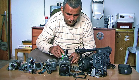 Un film palestinien  titré 5 Caméras brisées sous-entend évidemment « 5 caméras brisées par les Israéliens ». Et c’est en effet le cas. Paysan de Cisjordanie, Emat Burnat se procure une caméra en 2005 pour enregistrer les premiers jours de son quatrième fils, qui vient de naître. C’est aussi le moment que choisit l’armée israélienne pour expulser les habitants de son village de leurs champs, afin d’établir une barrière de barbelés qui protègera l’installation, illégale au regard de la loi israélienne, d’une immense colonie juive à la place des oliveraies. Emat Burnat utilise sa caméra pour filmer aussi ces événements, et désormais, en même temps que la croissance de son fils, il documentera les manifestations hebdomadaires, la répression brutale, l’inexorable destruction du mode de vie des siens. Il devient le chroniqueur en image d’une longue lutte, qui fera de son village, Bil’in, un symbole de la résistance pacifique de Palestiniens au vol de leurs terres par les colons juifs, sous haute protection de Tsahal.