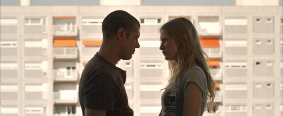 On voit très vite ce qui fait la singularité de ce premier film : inventer une alliance entre deux idées du cinéma qui d’ordinaire s’excluent, ou du moins s’évitent. Qu’il s’agisse de la bande de garçons fous de voitures customisées, du rapport du jeune Alex avec Rachel sa copine et mère de leur petite fille ou de l’incident mortel qui ouvre le film pour le hanter, la manière de filmer se branche sur une énergie survoltée venue du film de genre, avec dopage affiché à la frénésie des jeux vidéo. Mais simultanément, Alex et Rachel, habitants d’une cité de la banlieue parisienne, travaillant l’un et l’autre dans un supermarché, appartiennent à un temps et à environnement précis, que le film n’entend nullement sacrifier, caricaturer ou simplement utiliser au service de ses effets de spectacle.