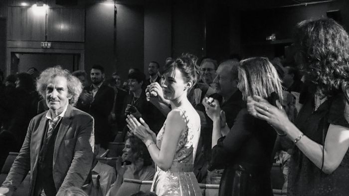 Philippe Garrel applaudi après la projection à Cannes de L’Ombre des femmes, avec Stanislas Mehrar et Clotilde Courau