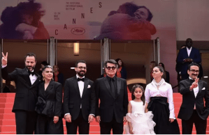 Jafar Panahi au milieu de l’équipe du film sur les marches du Festival, bien plus qu’un simple événement festivalier